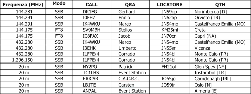 Il traffico radio è stato piuttosto limitato, ma abbiamo comunque portato a casa qualche piccola soddisfazione, di seguito i collegamenti più significativi: